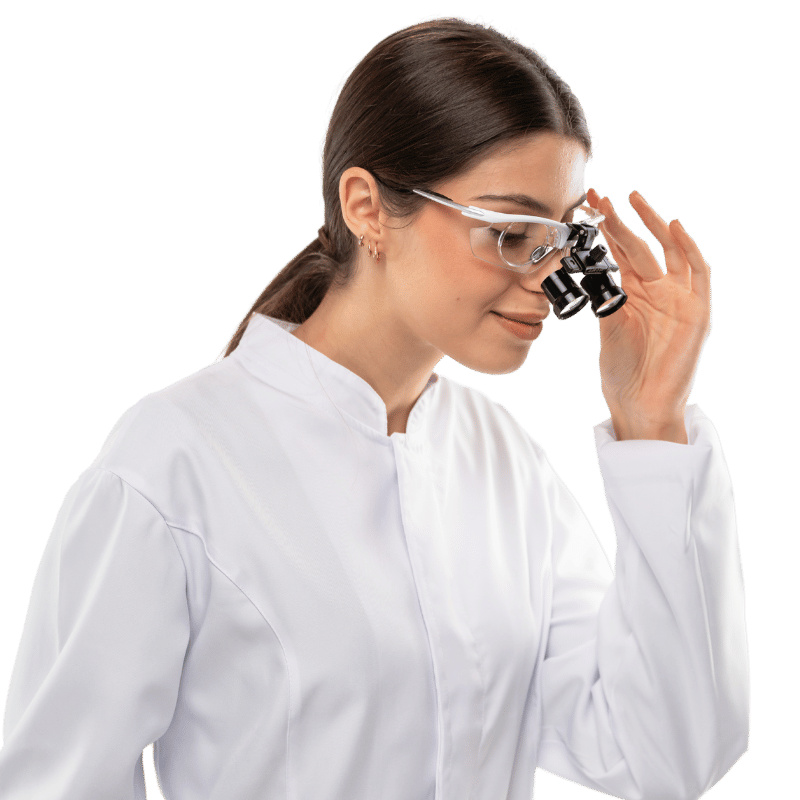 Lenti in vetro con ingrandimento di 2,5x e 3,5x, oltre a distanze focali da 25 a 55 centimetri. Con le lenti binoculari non dovrai più essere così vicino al tuo paziente!
