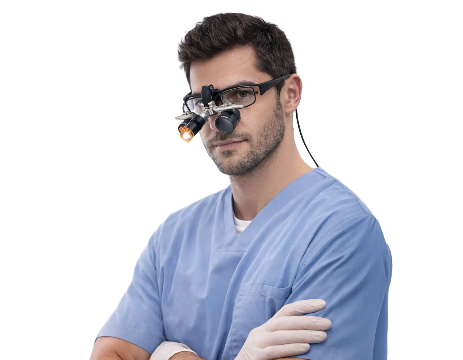 Lente odontologica con illuminazione LED da 5W e intensità fino a 40.000 lux. Garantisce diagnosi precise ed ergonomia nel tuo studio. Batteria a lunga durata.
